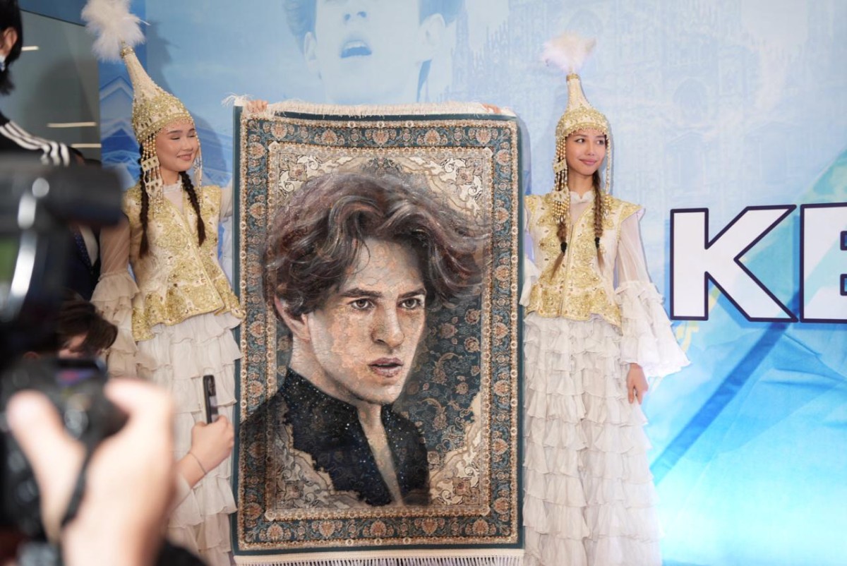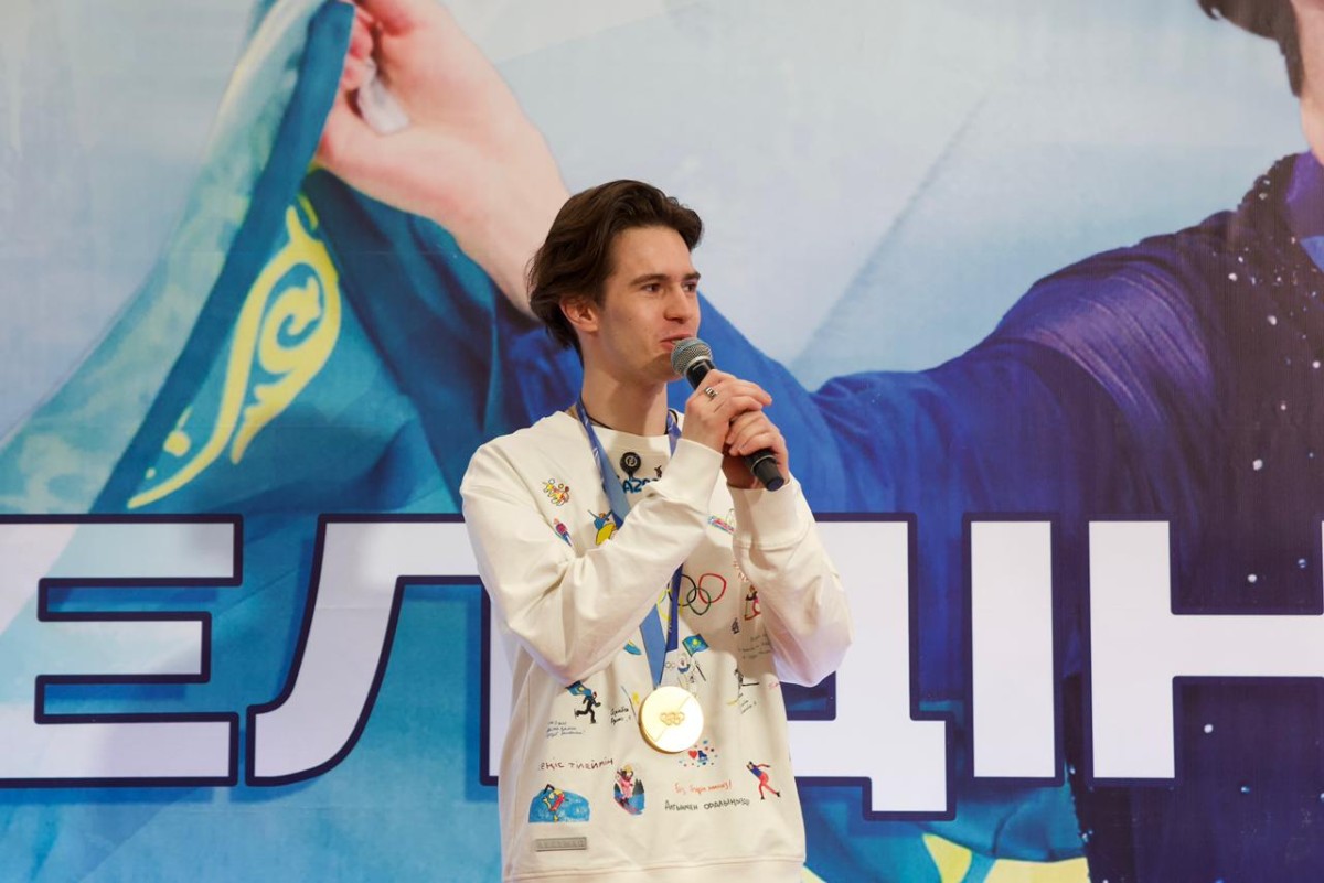 Алматыда өткен салтанатты шара барысында мәнерлеп сырғанаушыға оның бейнесі салынған кілем тарту етілді.